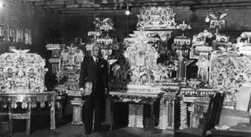 - James Hampton – an uneducated Washington D.C. custodian, legendary for the post-humous discovery of his life’s work, an installation known as “The Throne of the Third Heaven of the Nations' Millennium, General Assembly” (See Fig. 2). The installation, constructed over a 14-year period in an anonymous garage space, includes 177 objects -- furniture, altarpieces, and shrines -- each meticulously wrapped in aluminum and gold foil. It is assumed that Hampton was creating a sacred church space that would eventually be used as a functional sanctuary, with himself serving as minister. The work of folk art is considered by some to be “the finest work of visionary religious art produced by an American," and now sits in the permanent collection of the Smithsonian Institute in Washington D.C.